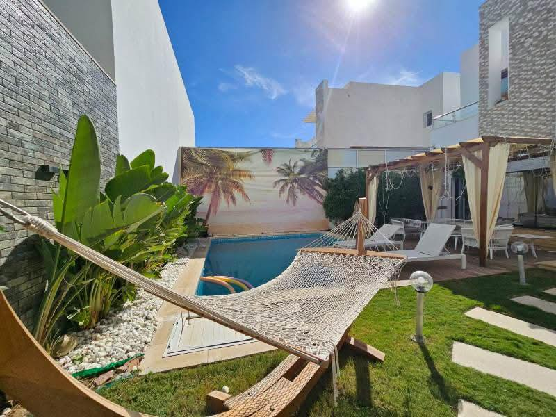 A LOUER Pour les vacances ✅ Une très Belle VILLA S+4 Avec PISCINE Située à HAMMAMET 7 minutes de la plage par 🇹🇳 de l hôtel sindbad La Villa est composée comme suit : - 4 chambres dont il y'a un suite parental - Cuisine bien équipée et amé...