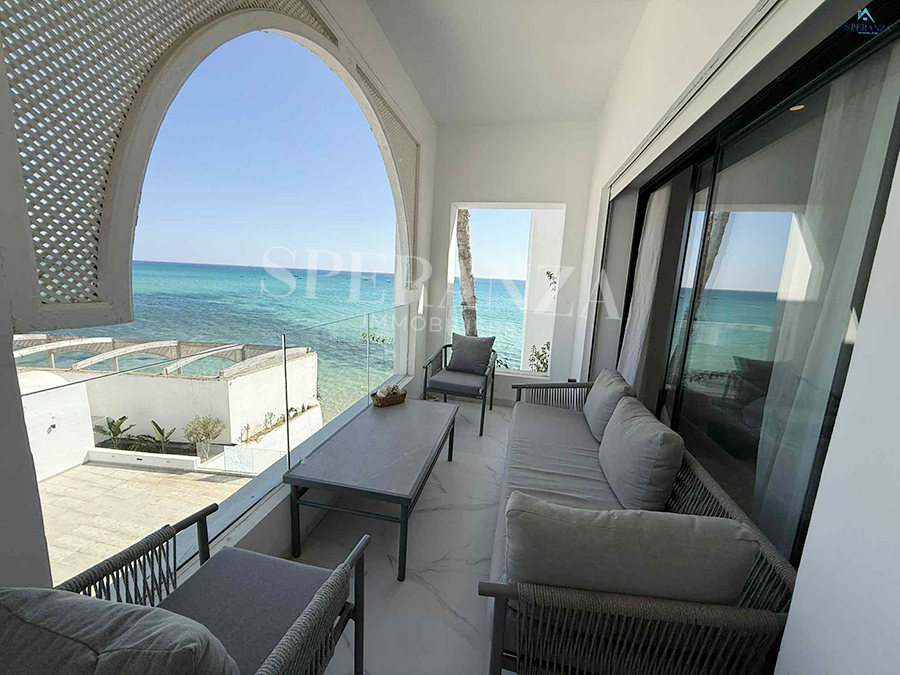 Speranza immobilière Hammamet vous propose à la location vacances un appartement pieds dans l’eau situé à Hammamet centre.Il est en premier étage proche de toutes les commodités. L’entrée donne sur un salon lumineux grâce à ses fenêtres qui possède...