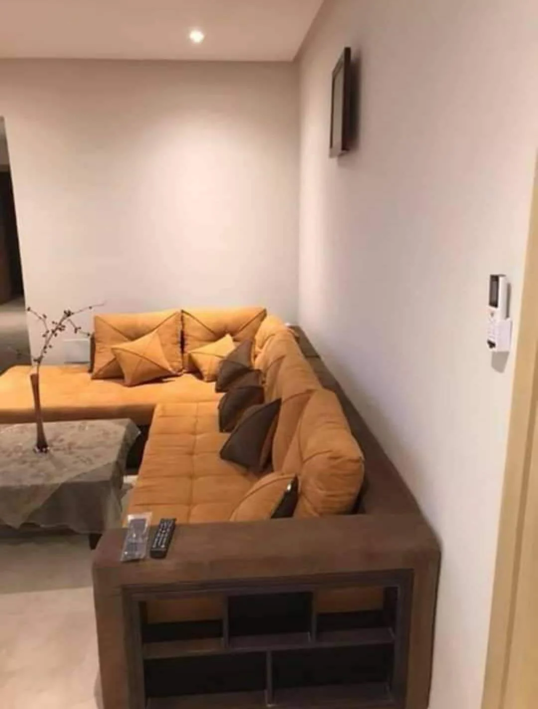 Appartement S+1 situé au rond-point Panorama à Sousse. Il se compose d’un salon, une cuisine équipée avec table à manger, une chambre avec lit double, un balcon et une salle de bain.